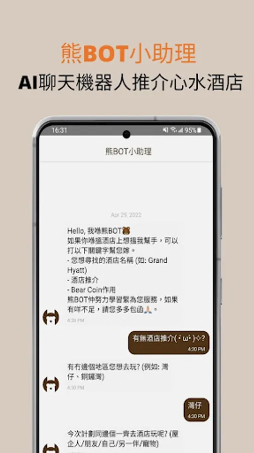 HotelnBear is a hotel recommendation mobile application that integrates most of the hotel information in Hong Kong. With just one APP, you can easily find the hotel that suits you. Whether you are staying at a hotel, having fun, working or celebrating, we can use artificial intelligence technology to recommend the hotel of your choice to you.