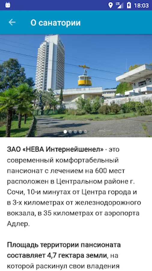 "NEVA Interneyshenel" - a modern, comfortable guest house is located in a central area of Sochi treatment for 600 people, 10 minutes from the city center and 3 kilometers from the train station, 35 km away from Adler airport.