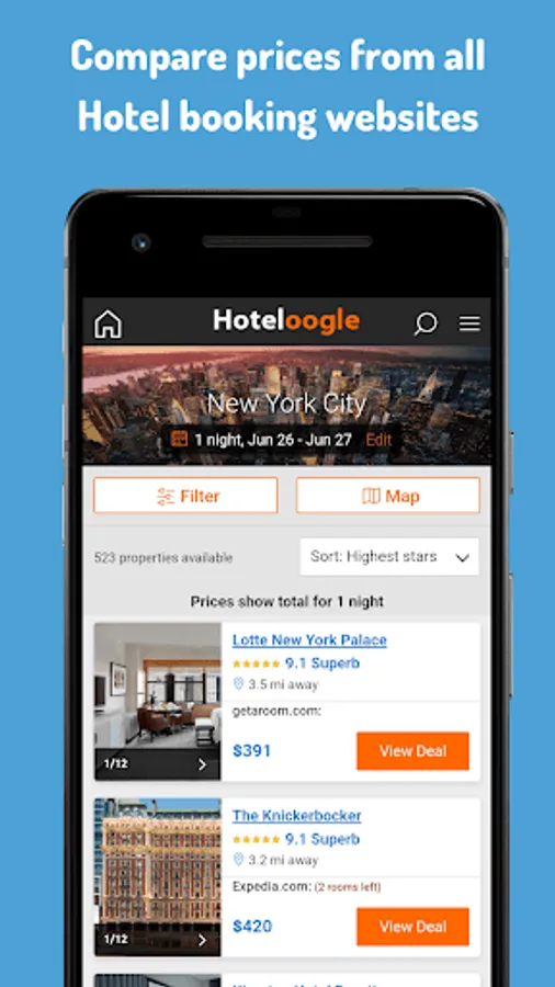 Hoteloogle is a unique free hotel search engine. Install Hoteloogle app to compare hotel prices from all major hotel booking websites.