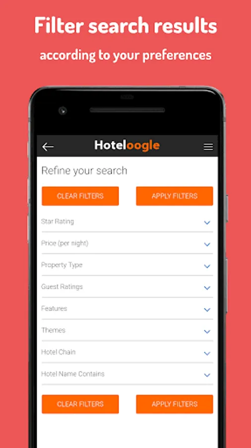 - Filter search results according to your preferences: Star rating, price, guest ratings, hotel facilities and many more.