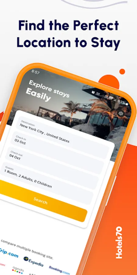 Cheap Hotels・Hotels70 app helps in search & compare hotel prices easily. Our online hotel booking app provides luxury hotels, vacation rentals, motels, staycations, and all kinds of accommodations. We compare top hotel deals providers like Trivago, Hotels com, Snaptravel, Airbnb, Expedia, Priceline, Vrbo, Orbitz, Travelocity, Tripadvisor, Booking com, Agoda, Homeaway, Oyo rooms, Hostelworld, Hotel tonight, Hotelscombined, & many more hotelbooking deals. Also, our cheap hotels app helps find exclusive last minute hotel deals.