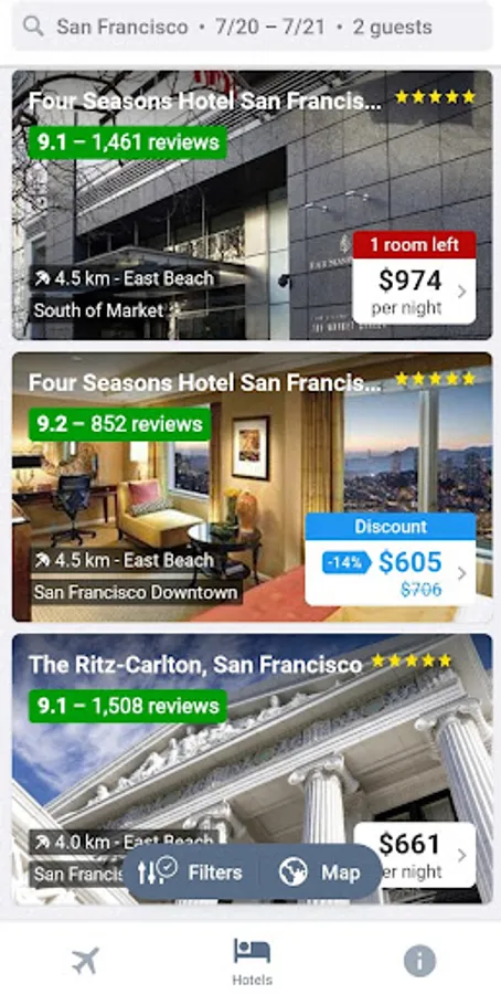 Discover last-minute hotel deals and find hotel rooms to suit your needs, anywhere in the world. Filter your search by location, rating, price, and property type, or just browse all destinations offered on the hotel booking app. Find suitable accommodations for your travellers.