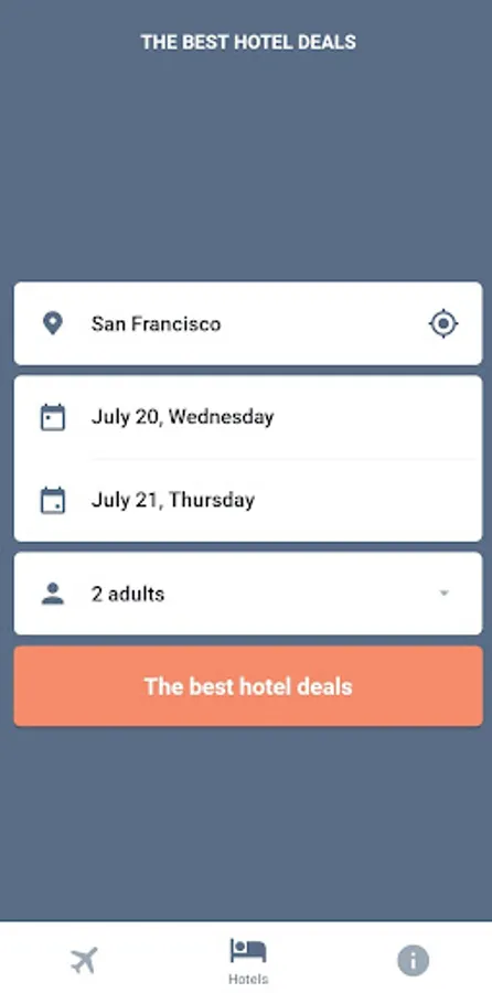 Hotels Easy is a free app that allows users to search for hotel deals by date and destination
