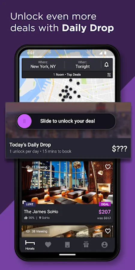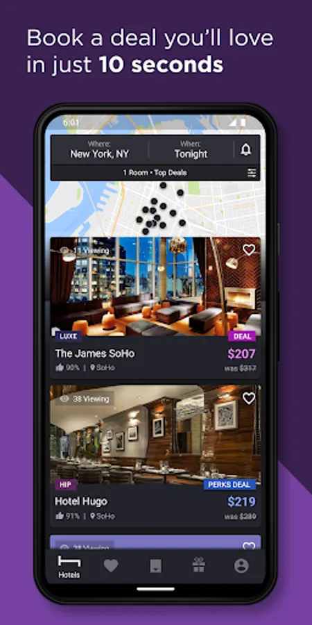 Amazing hotel deals for tonight, tomorrow and beyond! Hotels give us discounts on their empty rooms. You get the best rates and deals, whether last minute or in advance. HotelTonight makes it incredibly easy to find and reserve a sweet deal at a great hotel. Three taps, one swipe, you’re booked!
