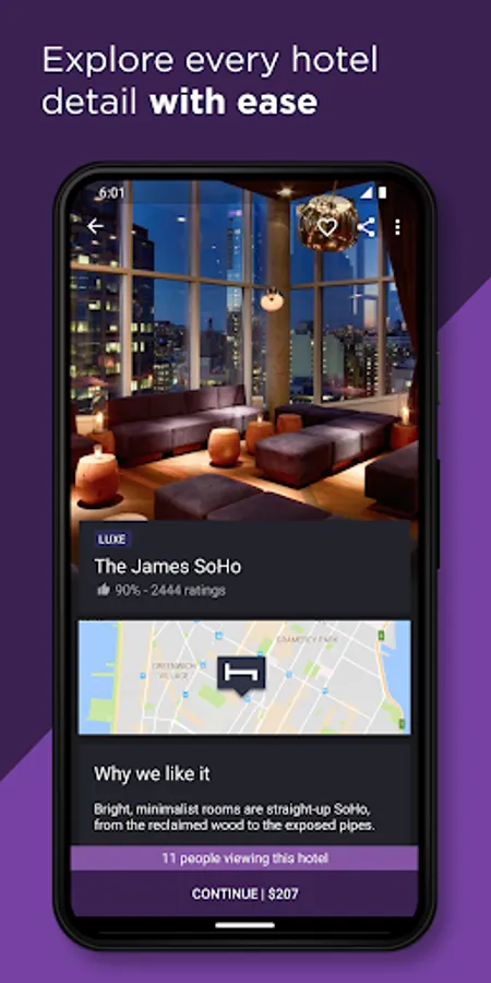 Hotels we love. Deals you’ll love. Tonight, tomorrow and beyond. We are the excuse to travel as much as you’ve always wanted. Travel doesn’t have to be out of reach... we help you reserve discounted last minute or advance rates at awesome hotels. Weekend holidays, summer vacations, last-minute trips… open up the HotelTonight app and you’ll be on your way to a great stay. Whether you’re looking to find a last minute holiday on the cheap, take a road trip and see where you end up, hit the town and see where the night takes you, or just plan less and live more, we’ve got your back. Download now to get in on these sweet deals at great hotels!