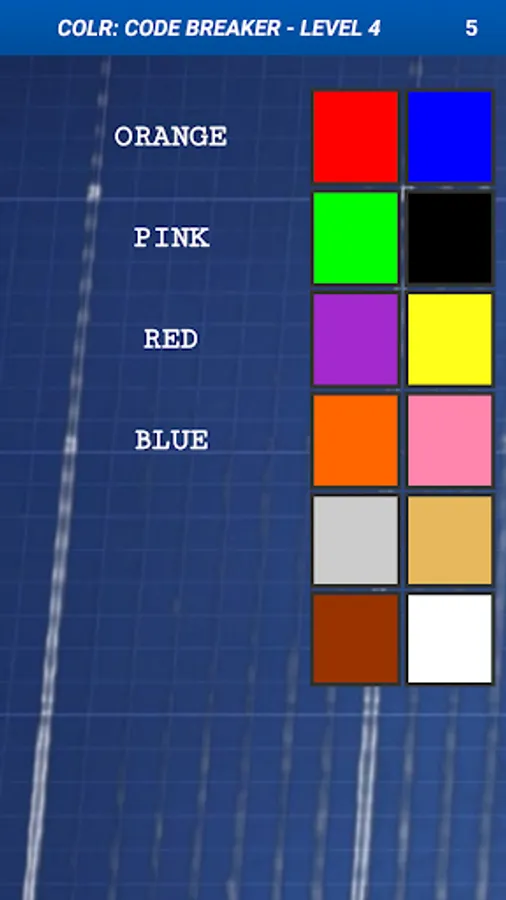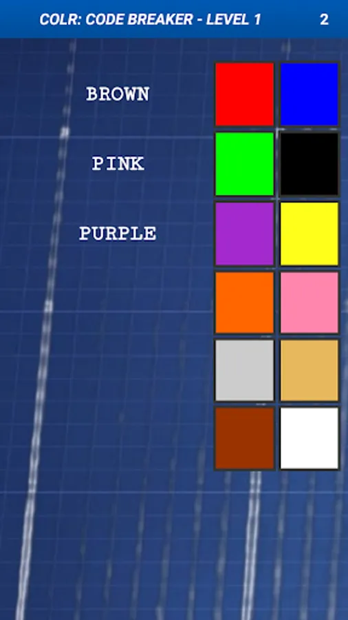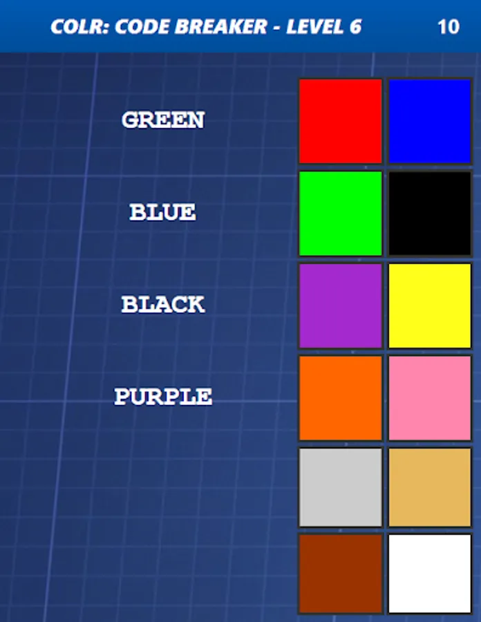 Test your memory in this simple colour based game! Use the colour panel on the right hand side to enter the colours from the list in the right order, be careful though, you only have 10 seconds to complete each level and once you start entering the code, the list disappears!