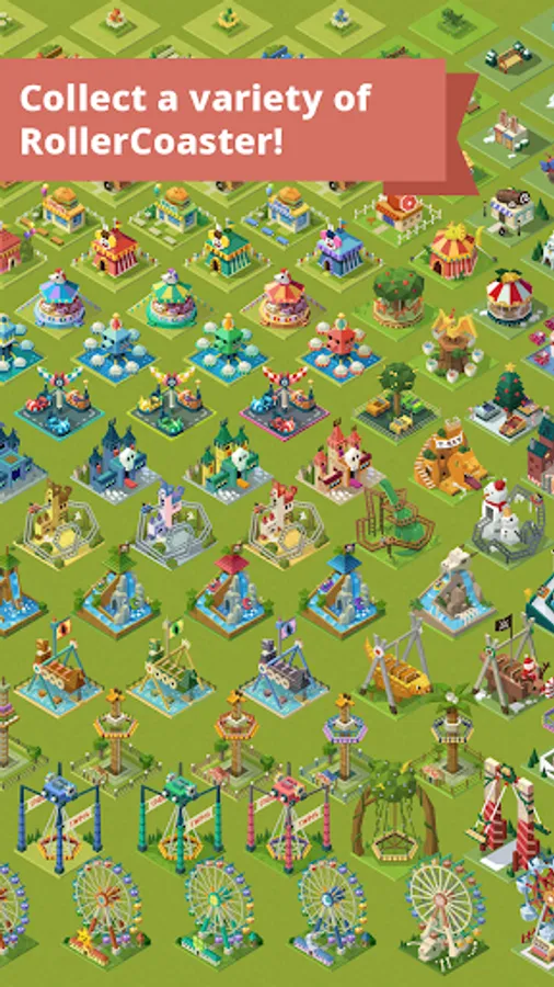 ■ Fun to collect Various design rides and to expand theme park