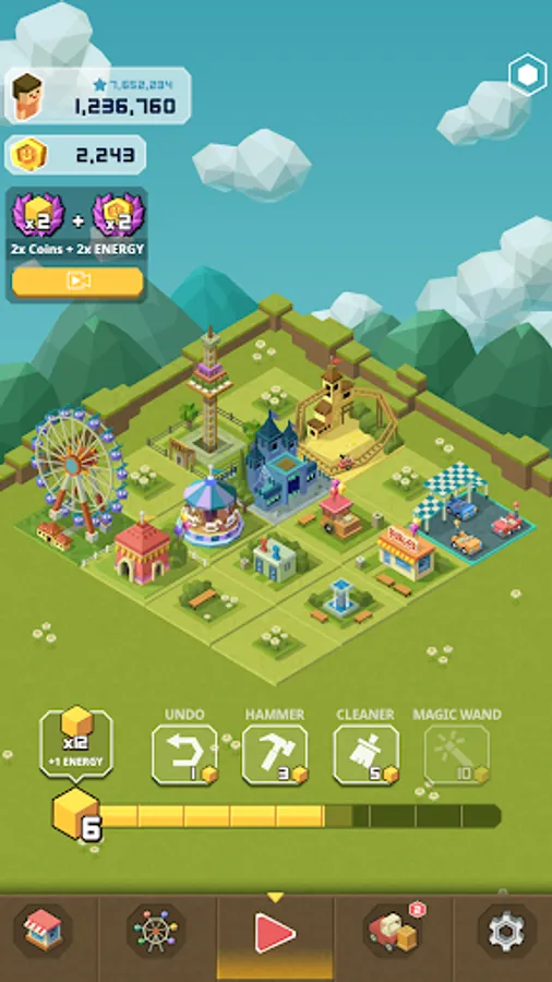 • Every time you move blocks, you can get a variety of rides, attract more guests, earn money, and purchase more fun rides with that money to expand your own theme park.