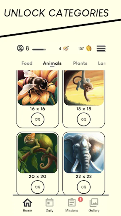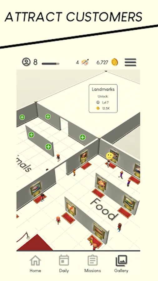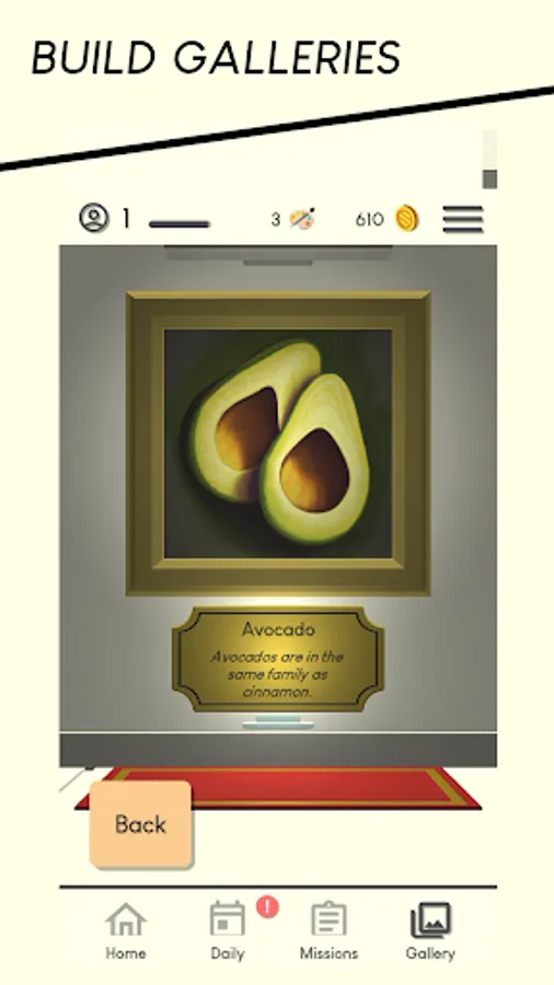 ▶ CUSTOMIZE galleries by building and improving art exhibits for each completed picture.