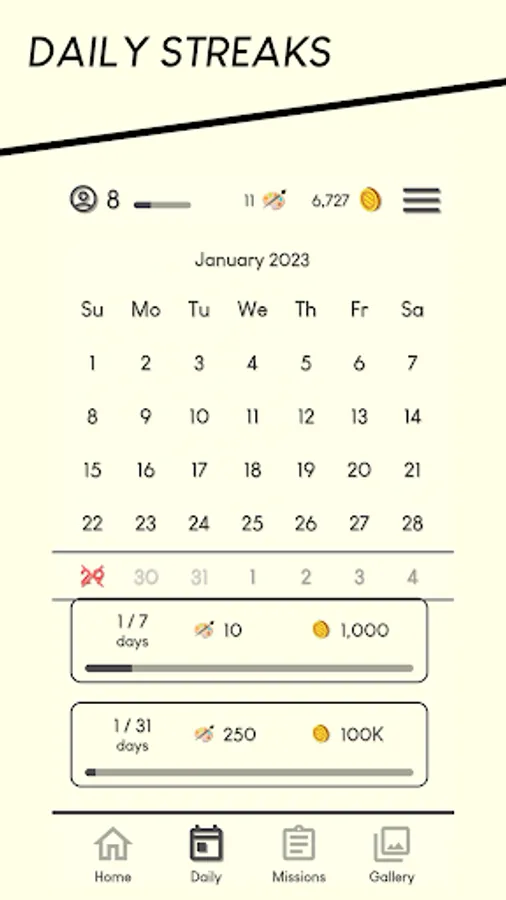 ▶ ACHIEVE infinite daily streaks and completion on hundreds of missions!