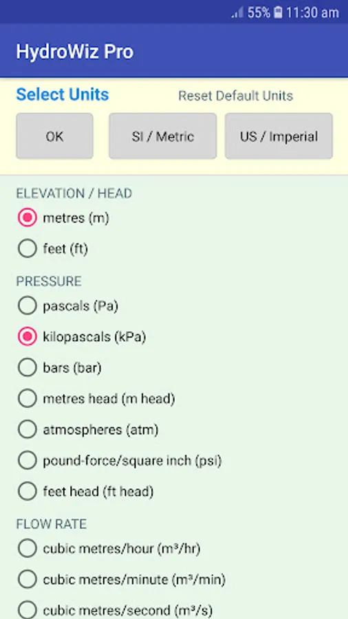 • Preferred units of measurement in both SI/Metric and US/Imperial units.