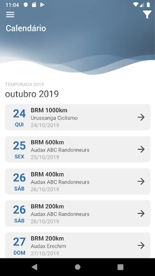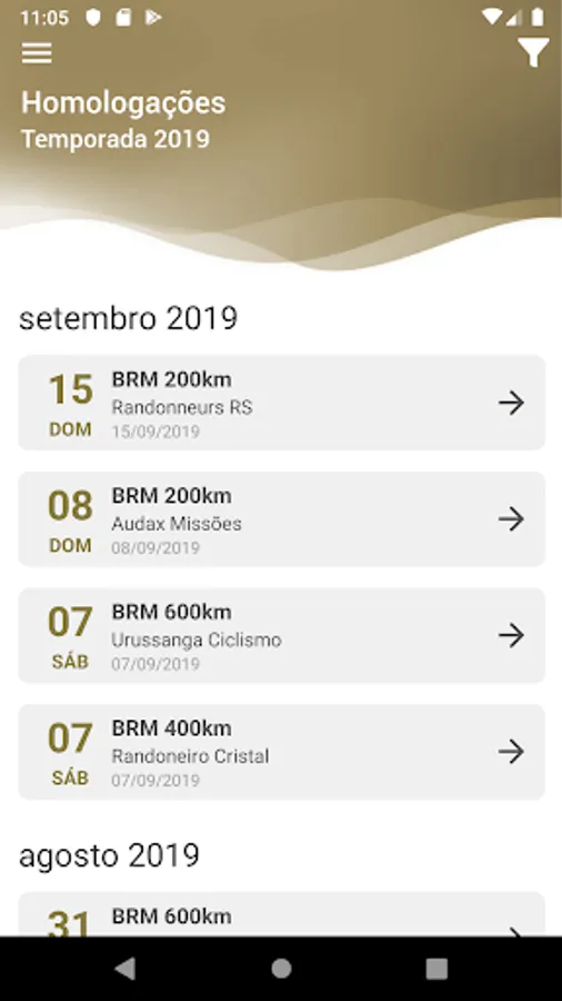 The Official App of Randonneurs Brazil that allows you to consult the Calendar of Events of the current season and the Approvals of Randonneurs Mondiaux Brevets and LRMs.
