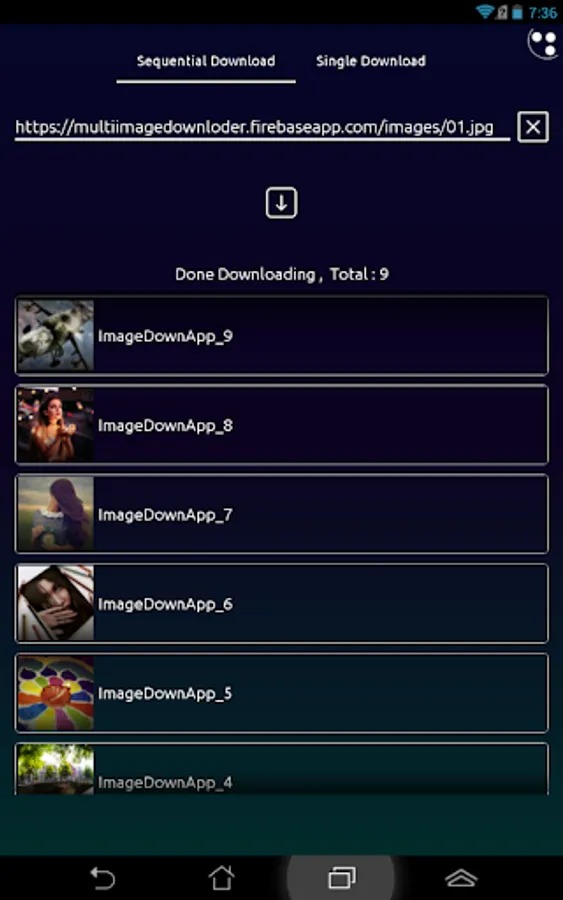 To download in sequence just copy paste the url of first image in the app and press download button. And there you go! And also copy paste instagram link in the app inside single image download section to download image from like instagram.