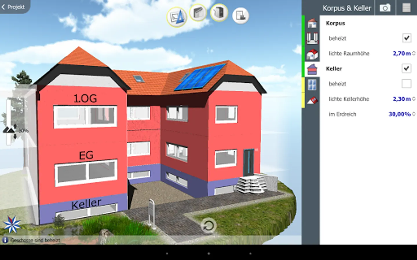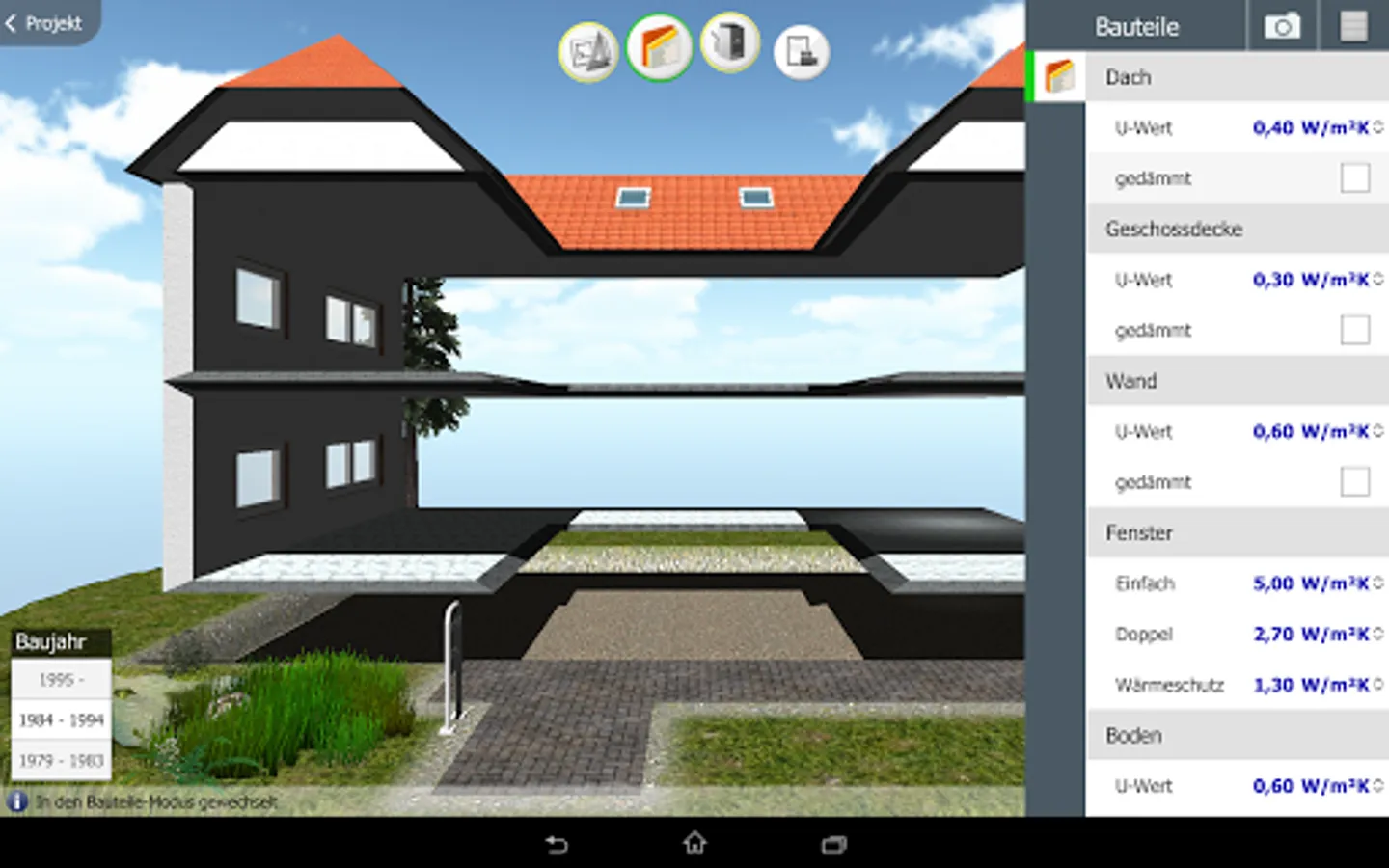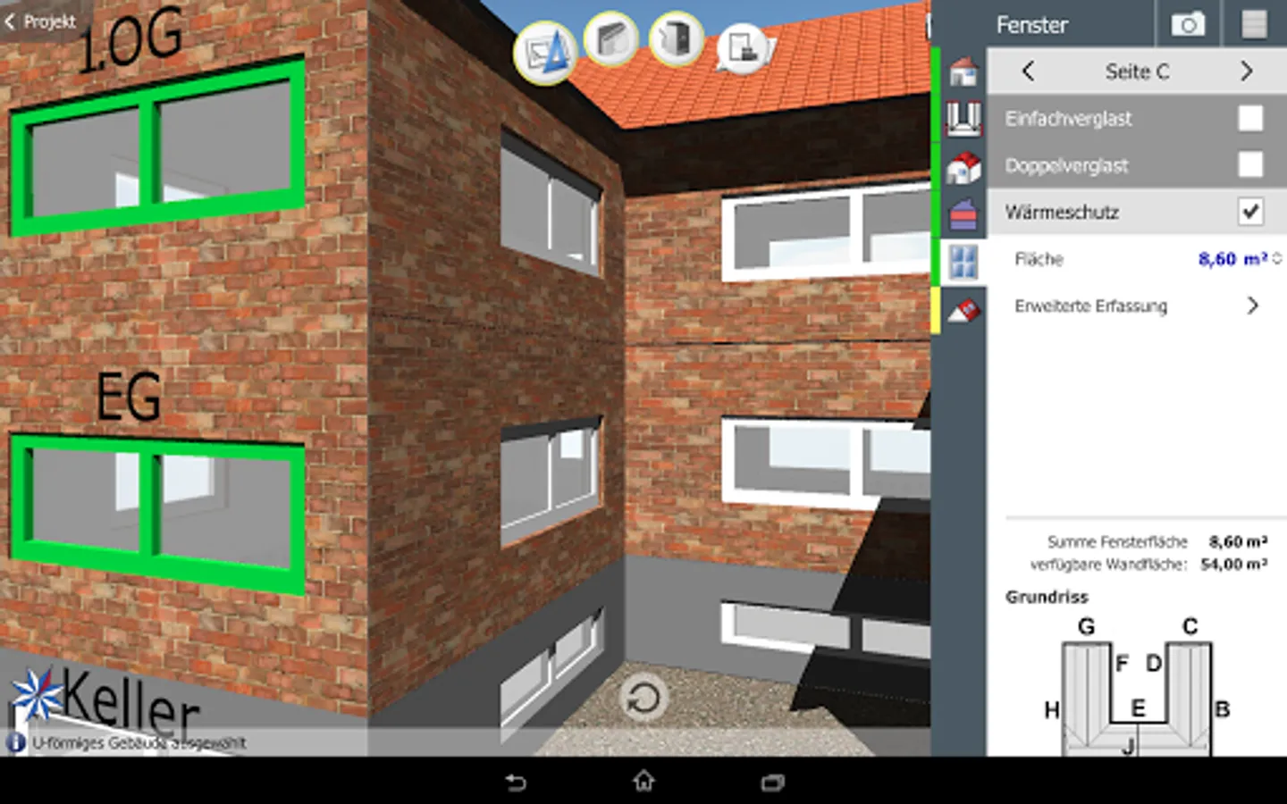 The Hottgenroth detection module for detecting mobile buildings on site! With the power of app you create impressive at the customer site a building using dynamic 3D model. Capture floor plan, roof, basement, windows, construction, plant engineering and consumption of residential buildings. Reconcile your recorded data with the software "energy consultant" via a secure SSL encryption from *.