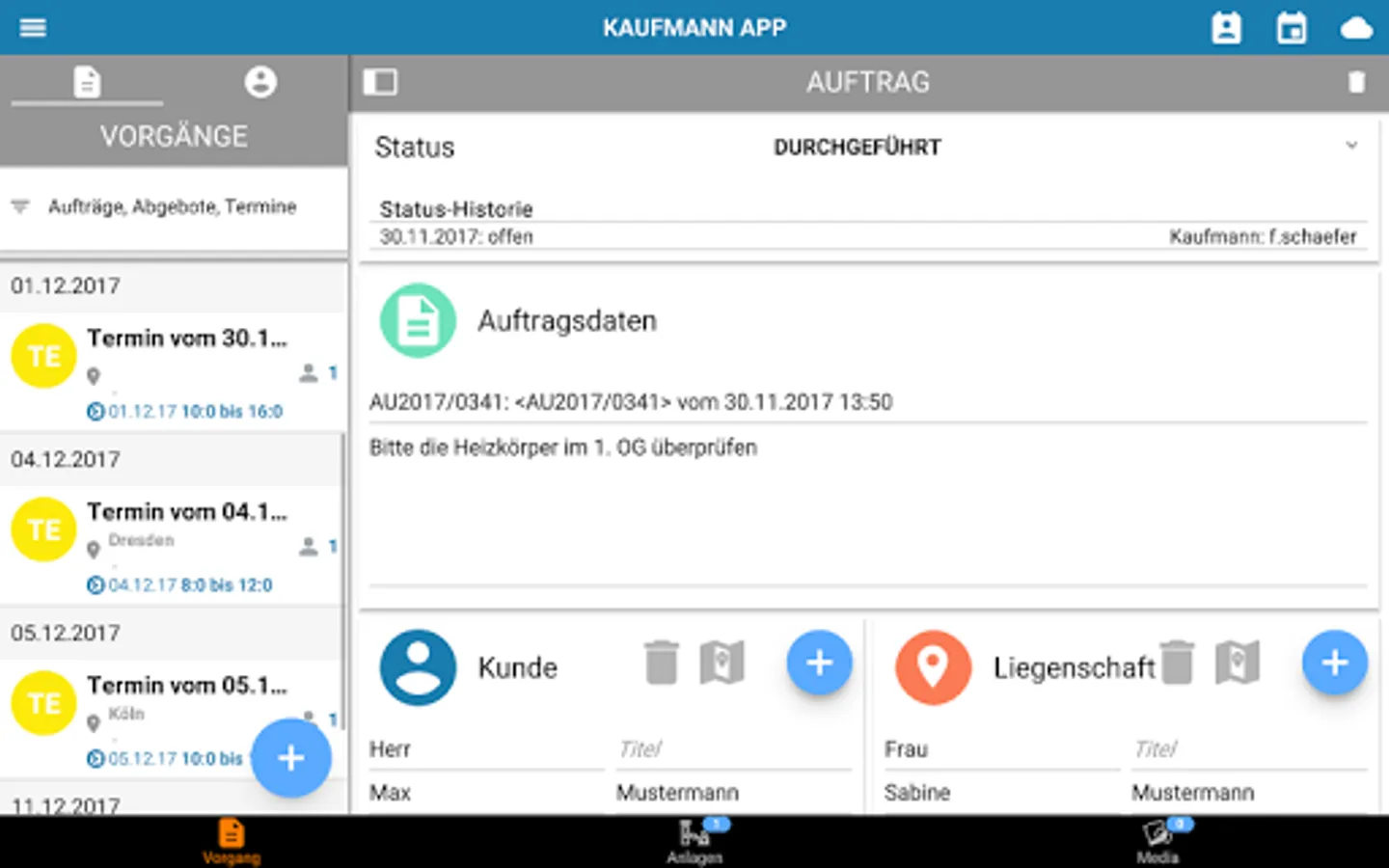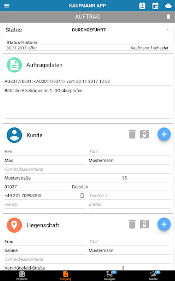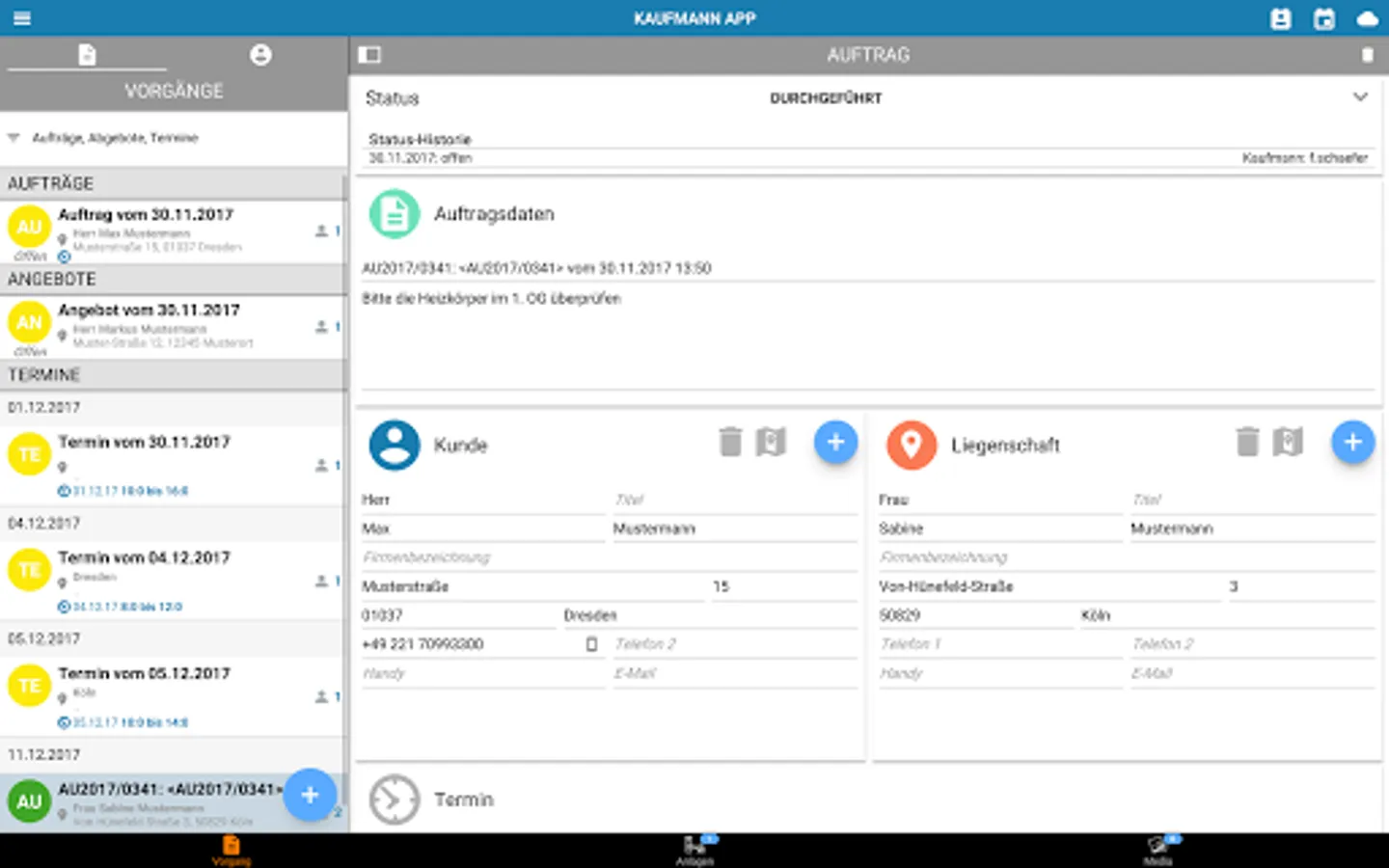 - Documents about the current work order including signature as PDF for sending by e-mail or many other messaging services and for printing, e.g. via airprint