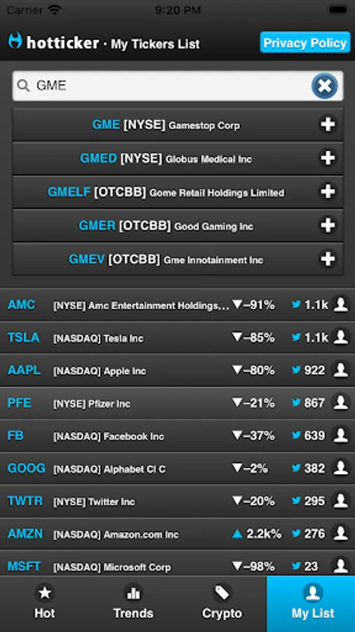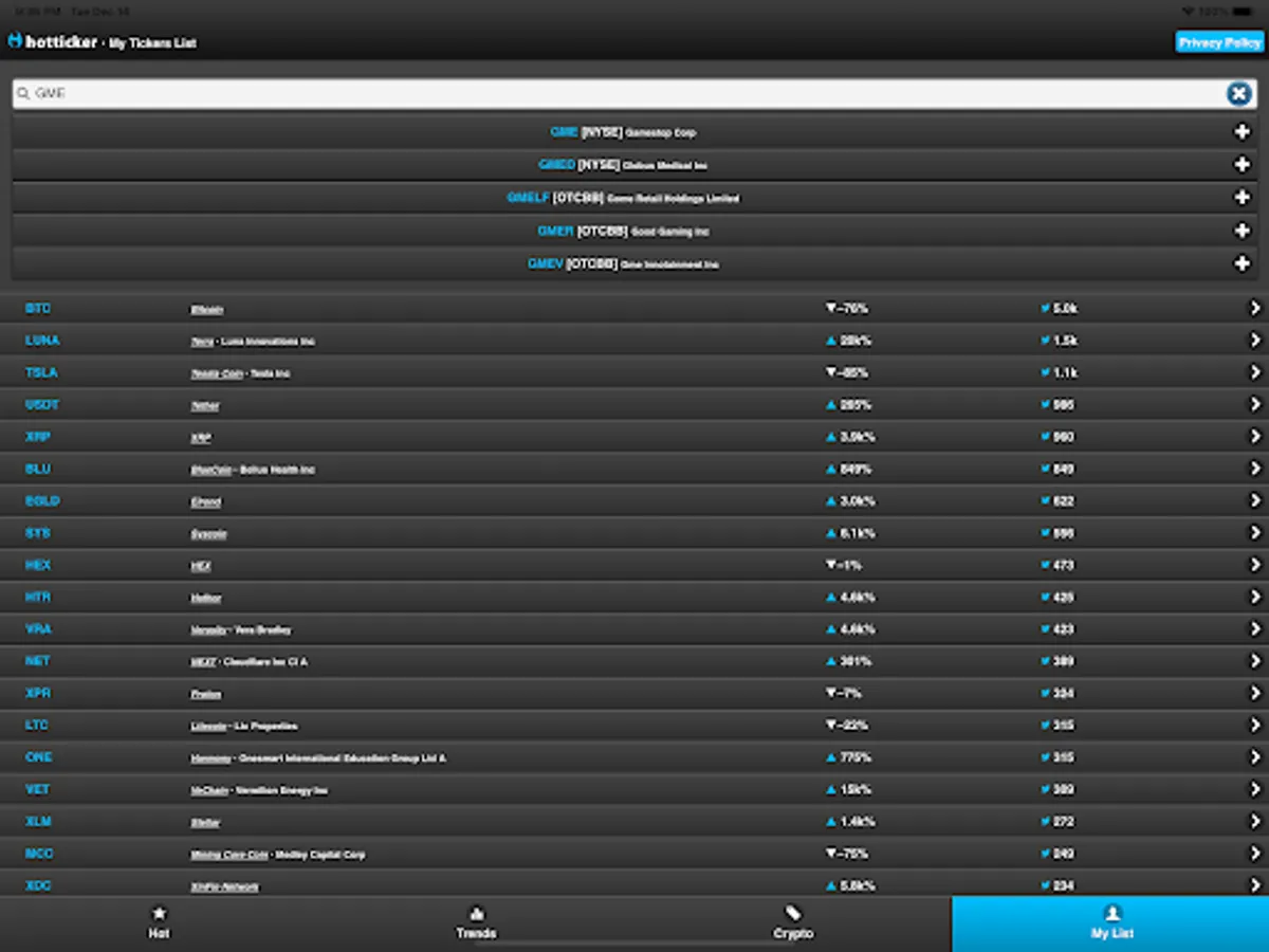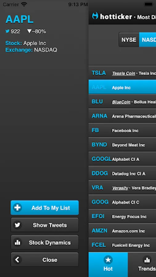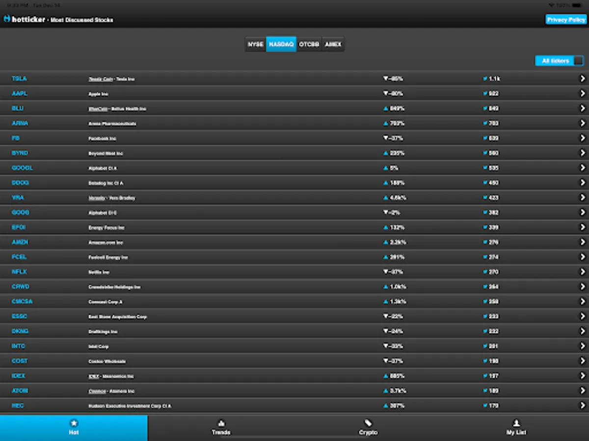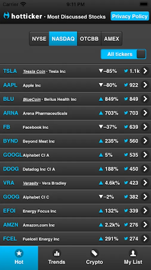 Welcome to HotTicker. The best app to find trending Twitter mentions for stock market tickers. View what's hot, what's trending, save your favorite tickers to keep an eye on them, analyze the stock and see all relevant Twitter mentions in-app. Spot the next $GME or $AMC before it skyrockets.