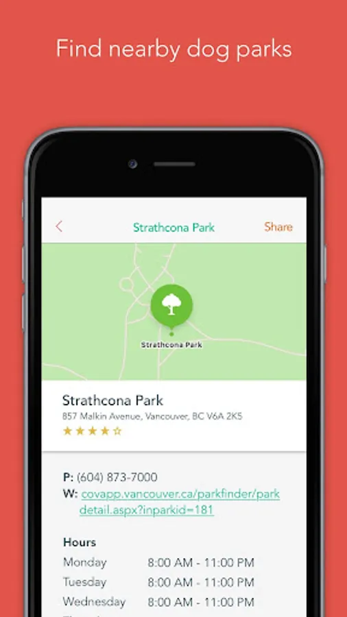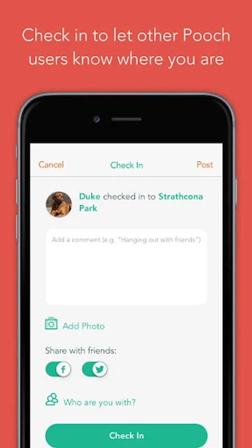 • Write and read reviews, upload photos, check-in to dog parks and businesses and notify friends