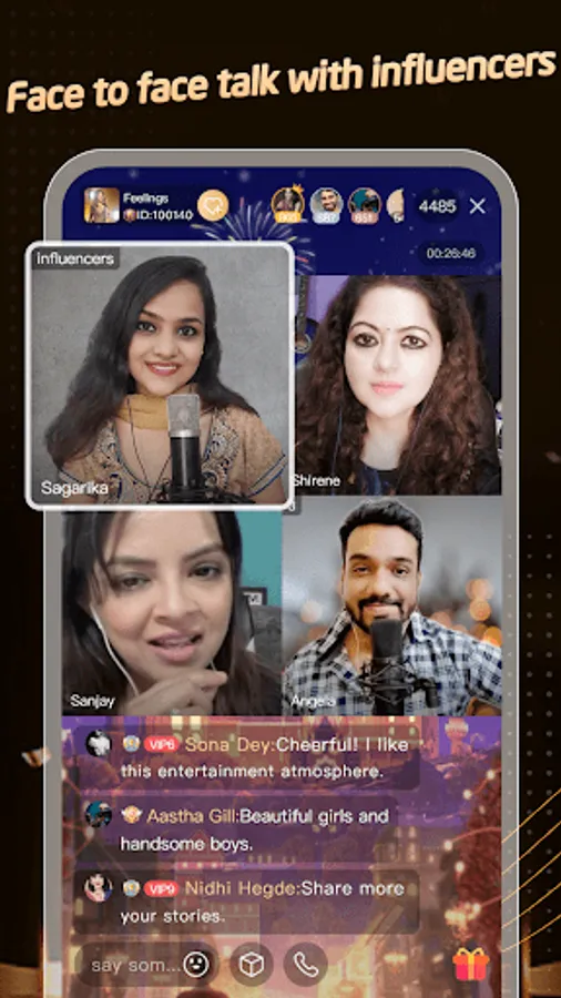 Having live call with spiffy friend, then you can sing,dance and live chat with your favorite artists together.
