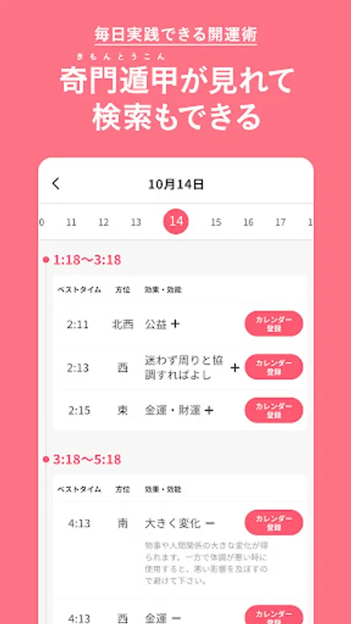 It is also possible to search by 20 effects, or to search by time zone and direction and display them on the calendar.