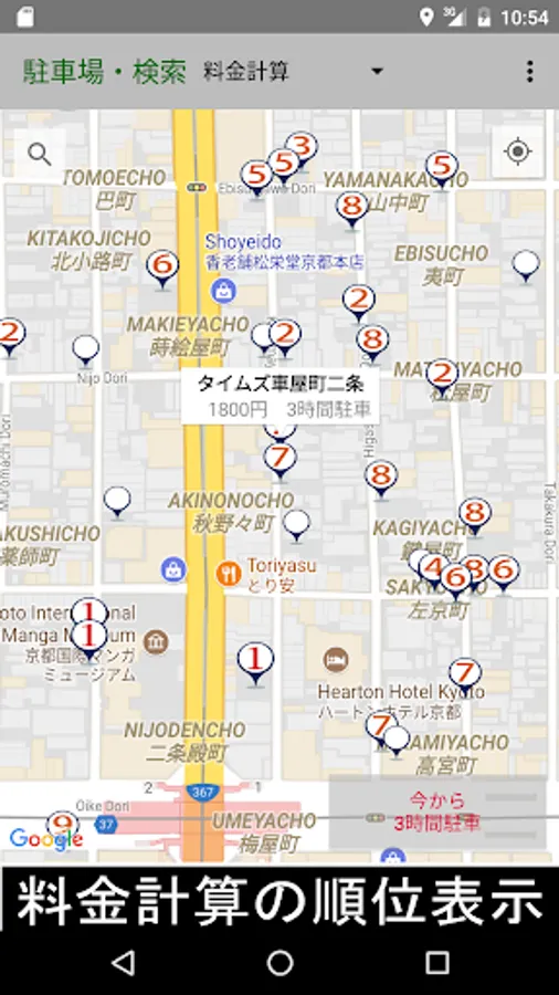 -Calculate the parking fee at the specified time and display the ranking on the map.