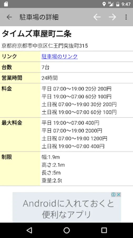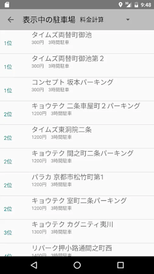 -Tap the "List" button to display a list of parking lots and coin parking lots in order of distance.