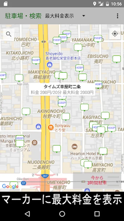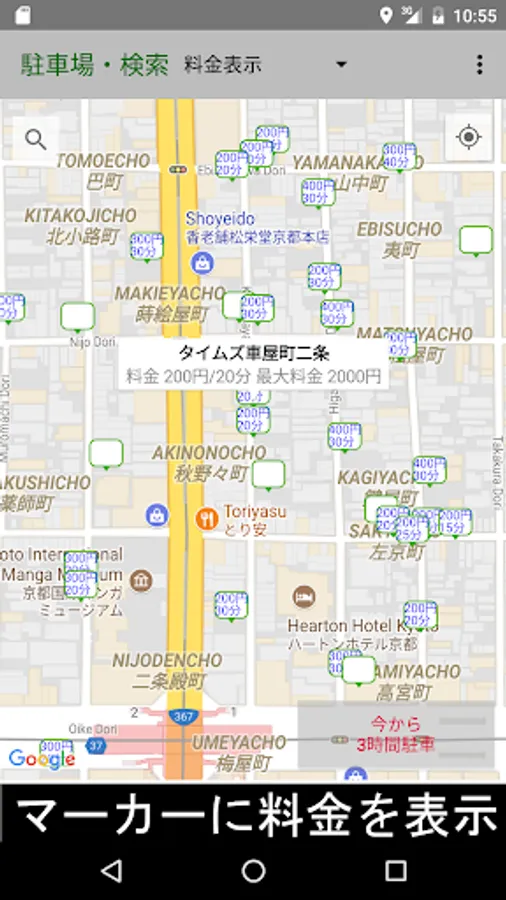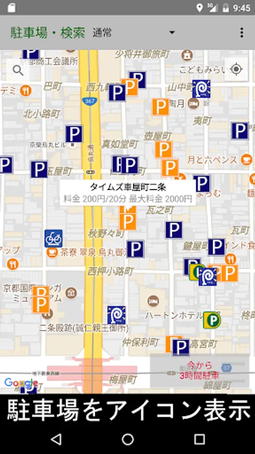-Tap the parking lot and coin parking icons and tap the displayed balloon to display the parking lot and coin parking details.