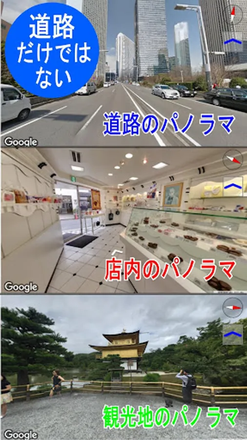 ストリートビュー プラス2はグーグルマップ(Google Maps)のストリートビュー(Street View)を使用しています。
