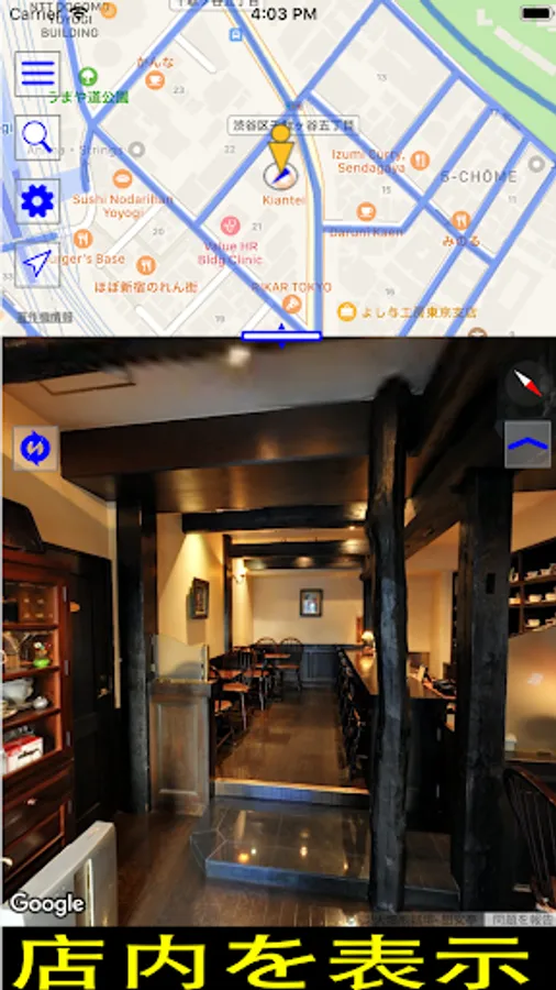 ・地図上の黄色いポイントをタップするとお店やレストランのインドアビューを表示します。