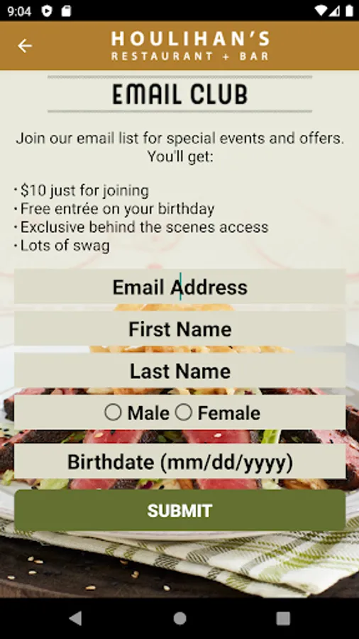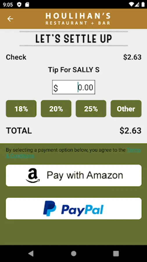 The Houlihan’s app allows users at participating locations to pay their bill using PayPal, or Amazon. Whether you’re short on time or just want an excuse to get on your phone, use the new Houlihan’s app to pay your bill and be on your way.