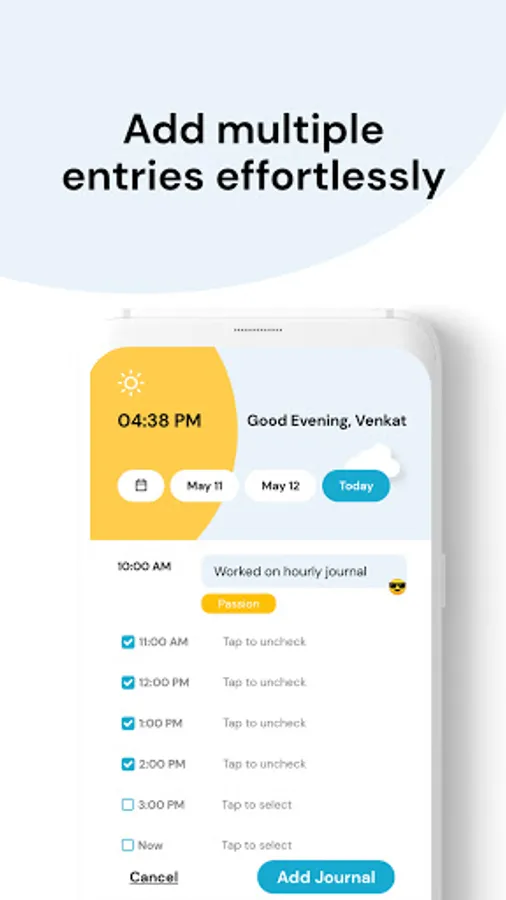 With Hourly Journal, journaling is many things at once and yet simple. It’s a close-to-your-heart diary, it’s a fun mood tracker and a step towards self improvement.