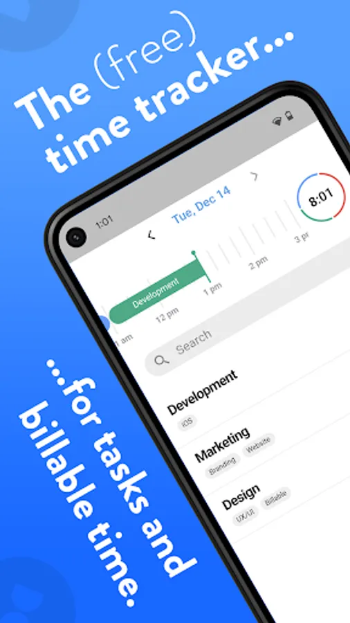 Integrate time tracking right into your phone’s home screen using customizable widgets that will give you insights into your day, week, and month.