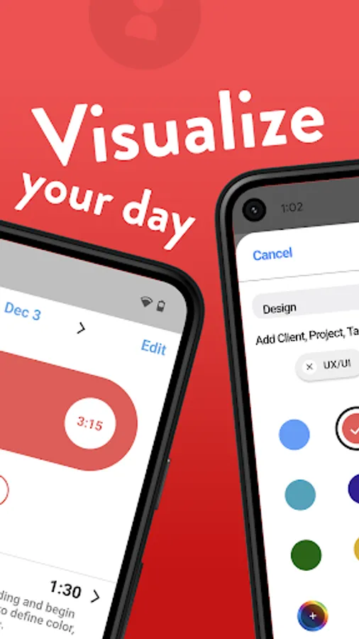 Time tracking doesn’t have to be bland or boring. With a color pallet of 15 bold colors and a custom color picker at your fingertips, you have hundreds of options available to make your UI as colorful and unique as you are.