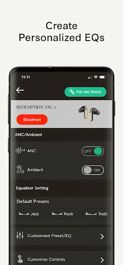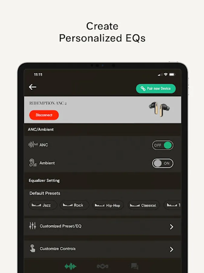 Explore classic EQ profiles like Bass Boost and Acoustic to find the perfect balance tailored to you, or create your own custom EQ to personalize your experience.