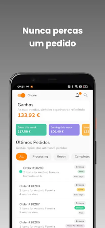 Simples ações como ver, aceitar, cancelar e rejeitar pedidos, adicionar diferentes artigos/menus ou ver estatísticas, são algumas das ferramentas que esta app possui.