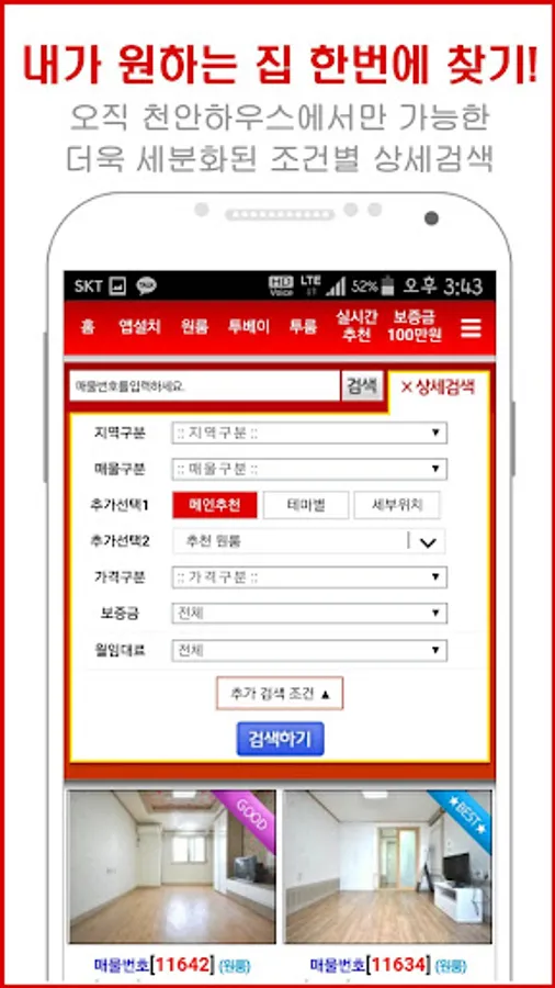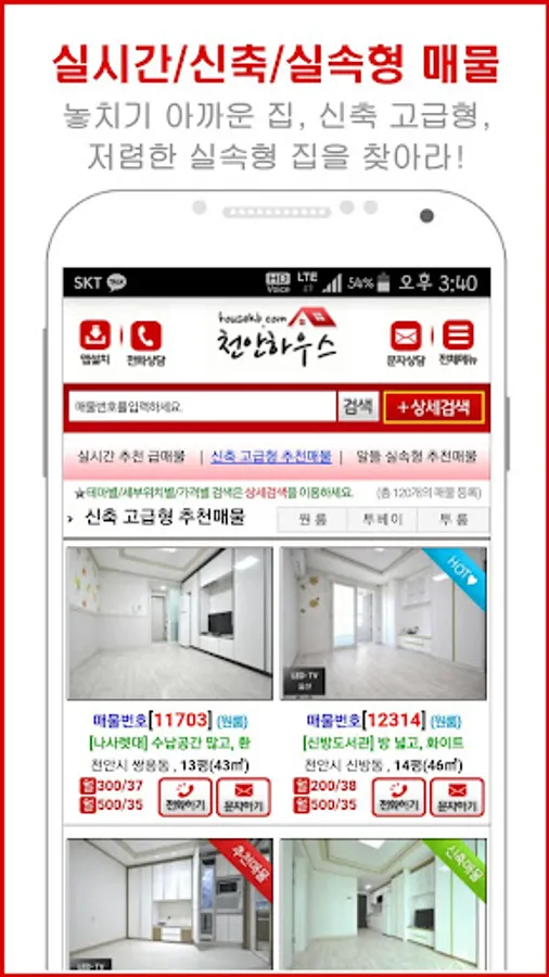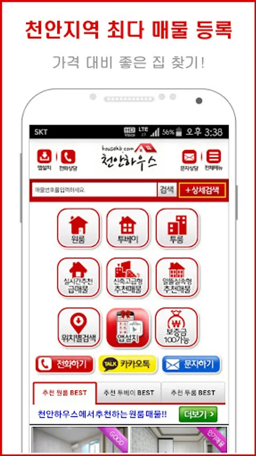 "Cheonan House" is an application that provides information together with real estate agents by taking photos of various properties in various locations so that those who save houses in Cheonan can find a house that is more convenient and convenient.