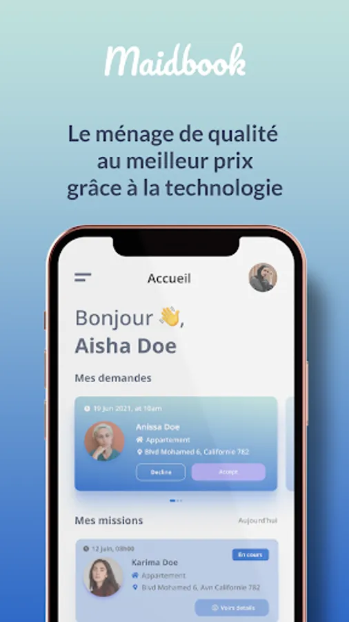 The dates and times of arrival will be chosen by you directly on the application. Download Maidbook and you will have a domestic help booking tool easily in your pocket.