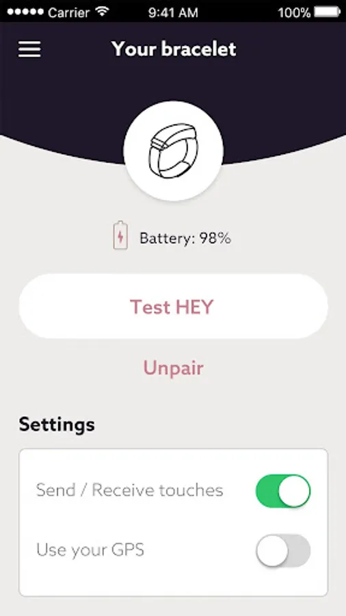 In order to use your HEY bracelet you need the HEY app. After creating a HEY account in the app and connecting your smartphone and bracelet via Bluetooth, you can send and receive touches to and from other HEY users. The app is really easy to use and it’s free!