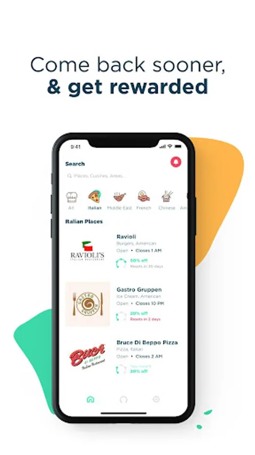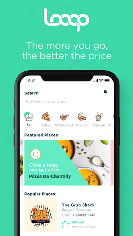 Get better prices by coming back sooner and more frequently to your favorite restaurants and Cafes. The more you go, the better price you get
