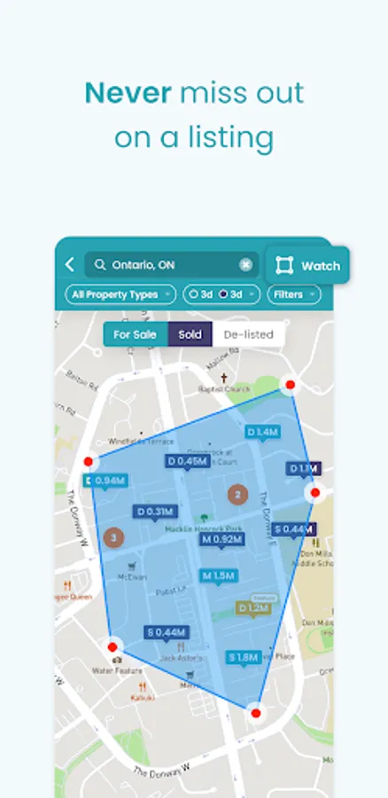 • Watch Communities - get notified when there are updates in your desired communities (new listings, sold, terminated)