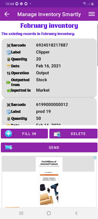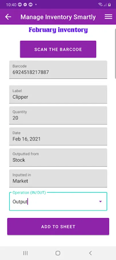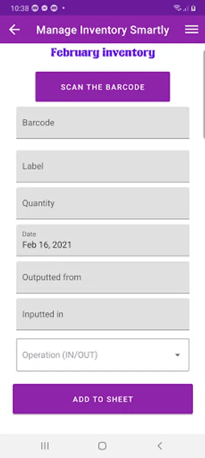 To add inventory operations or transactions you can use the automatic barcode scanning feature through the phone camera.