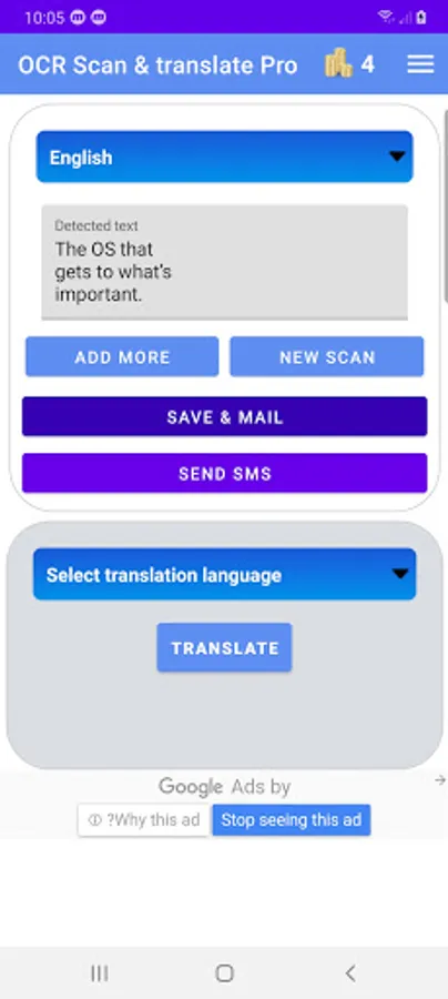 OCR Scan & translate Pro is an application that allows you to detect a text in an image through OCR. The application can detect text written in English, German, French, Spanish, Italian, Thai, Turkish, Indonesian, chinese and Russian.