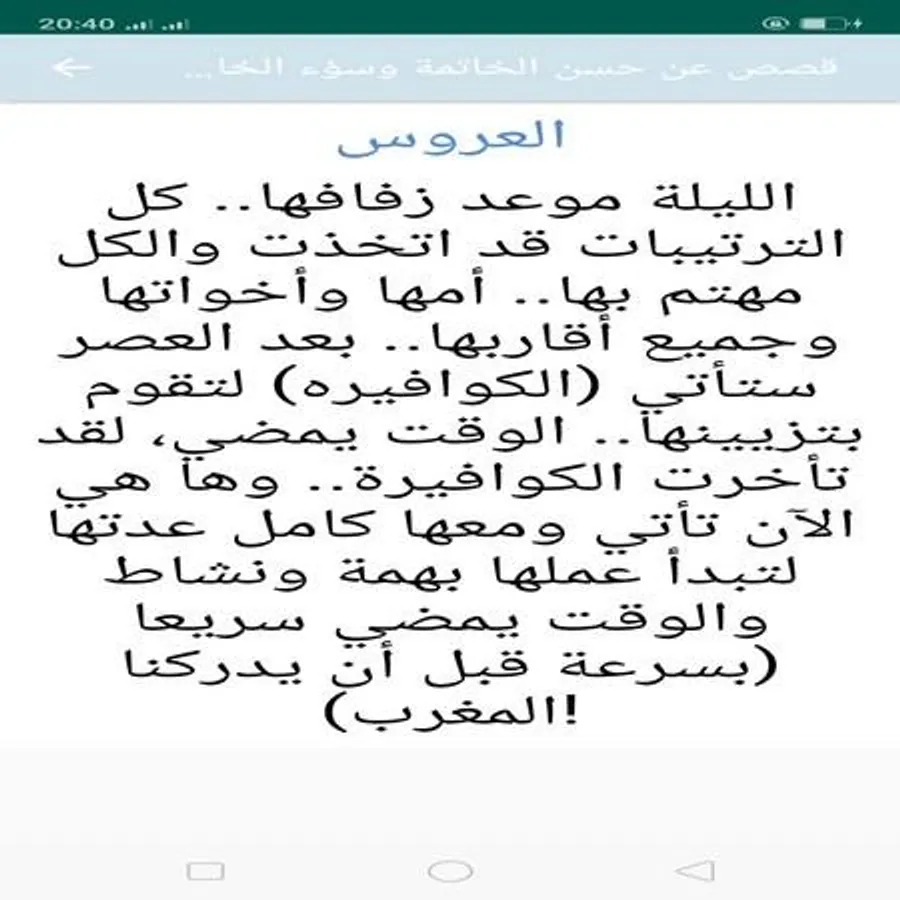 The application of stories of bad and good ending contains an encyclopedia of stories and the expression of good and bad end and the most beautiful stories of good ending influential without the net and in pure and high quality you can add the stories that you love to favorites and share and copy them with friends Conclusion, Lord, and how it is good. Conclusion is a supplication and signs of a good end after burial. What are the signs of a good end at burial? In an application we will find realistic stories about the righteous and the poor, and the signs of the good ending to the dead. Bad conclusion What are the causes of the bad conclusion Bad conclusion for women There are many sermons about the bad conclusion that examines the signs of bad conclusion
