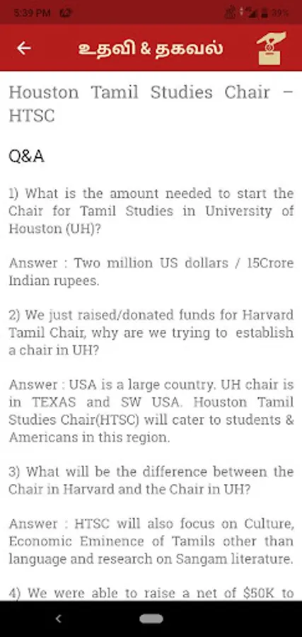 அமெரிக்காவின் புகழ் பெற்ற ஹூஸ்டன் பல்கலைக்கழகமும் தமிழ் மொழியைப் படிக்கத் தனி இருக்கை அமைத்துத் தர ஒப்புதல் வழங்கியுள்ளது என்பதை மிக்க மகிழ்ச்சியுடன் தெரிவித்துக்கொள்கிறோம்.