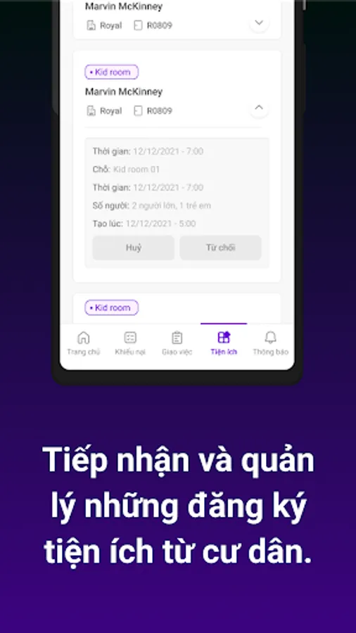 - Duyệt các yêu cầu đặt tiện ích của cư dân.