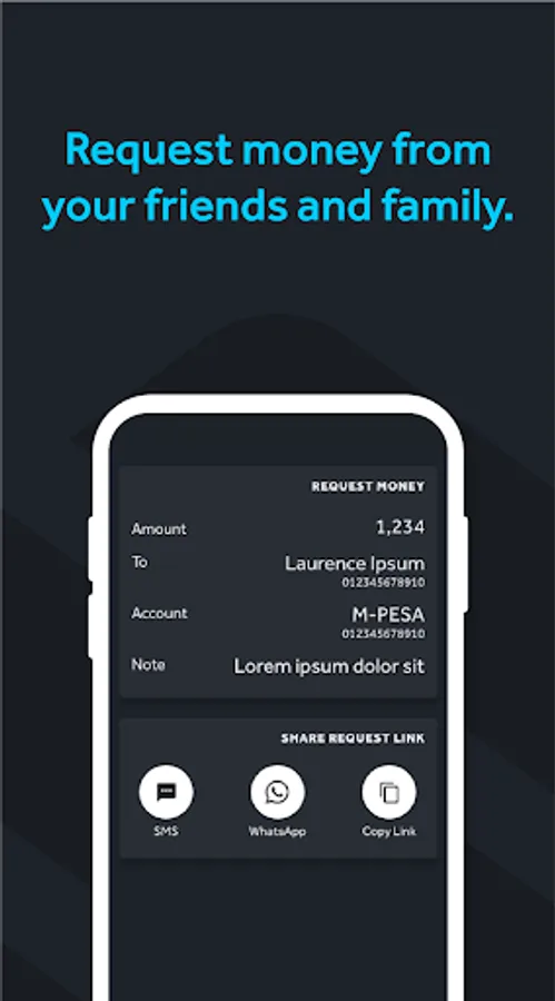 - Create payment links to request money and send the links via WhatsApp, Social Media, or SMS.