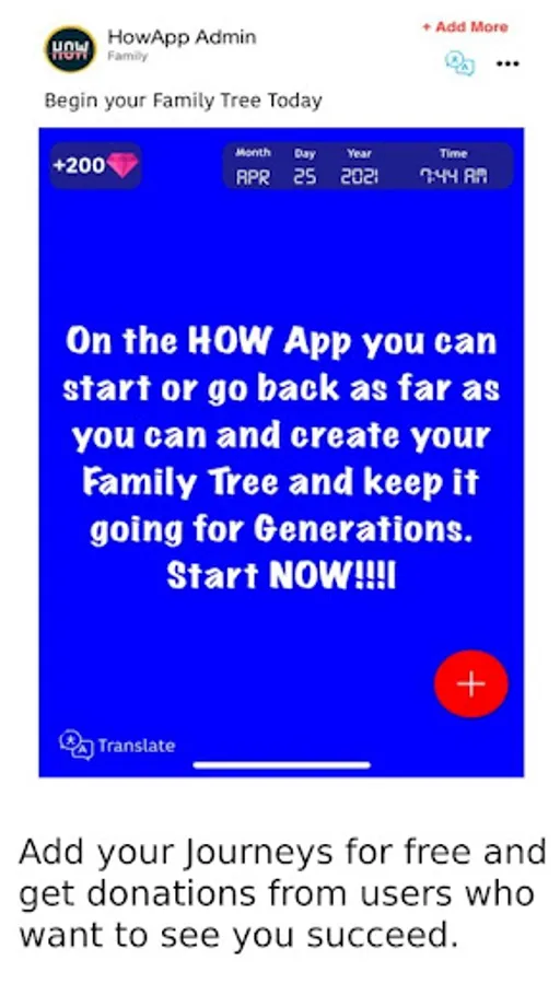 So add your Journeys now to the number 1 App worldwide that was created to bring us together with worldwide translation and help each other through our every day Journey's..........also everyone can document their journey or family tree with Times Stamps, Pictures, Text and Videos.