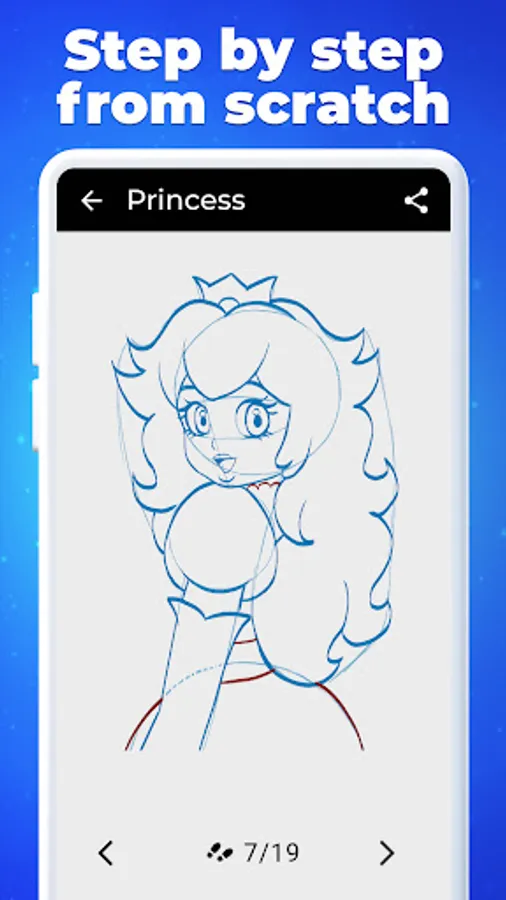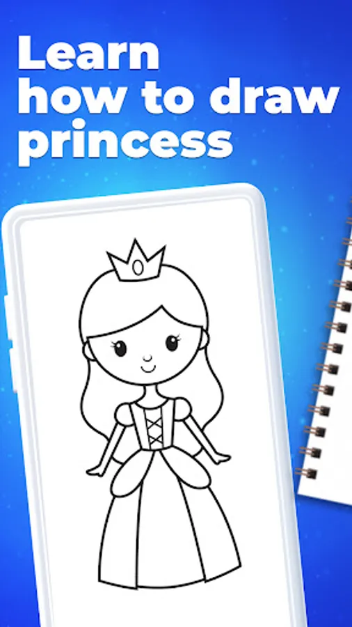 This app teaches you to draw your favorite princess characters. You will also find drawings of animals, cars and many more. You can choose multiple drawings from different categories.