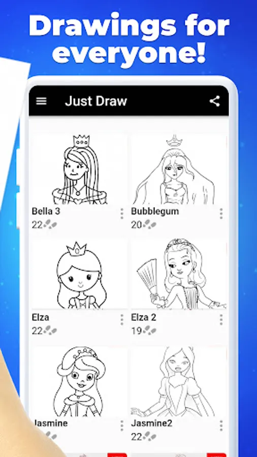 Just Draw is an app to learn how to draw step by step your favorite Princess characters.