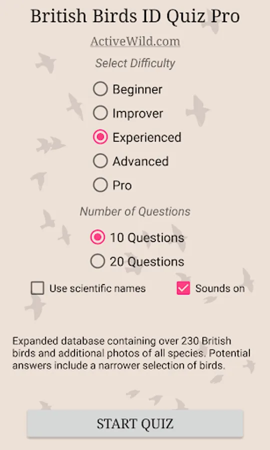 British Birds ID Quiz Pro features over 230 bird species, with multiple photos of each.