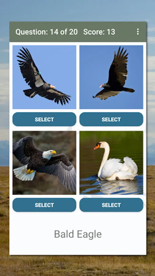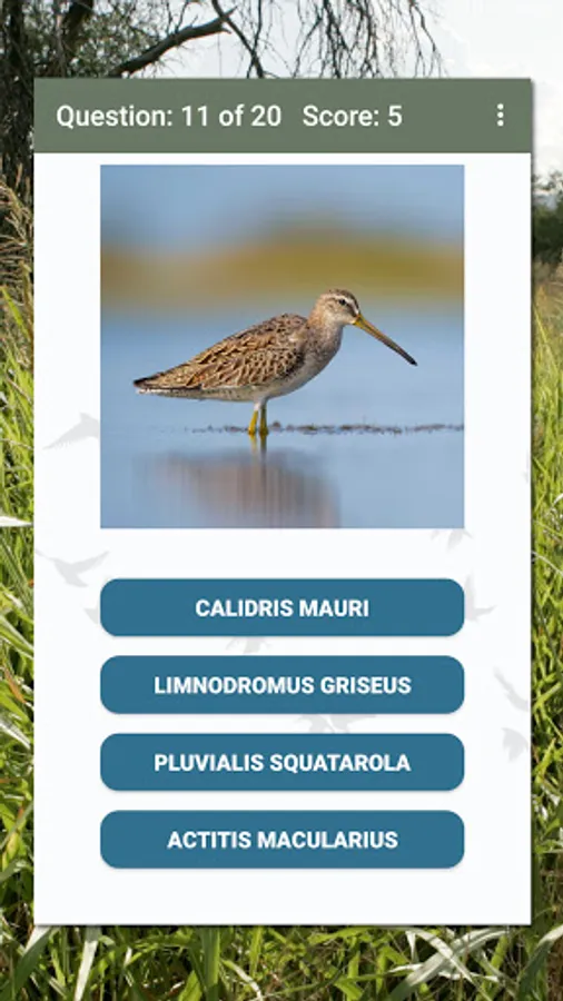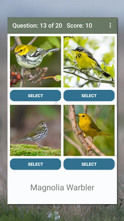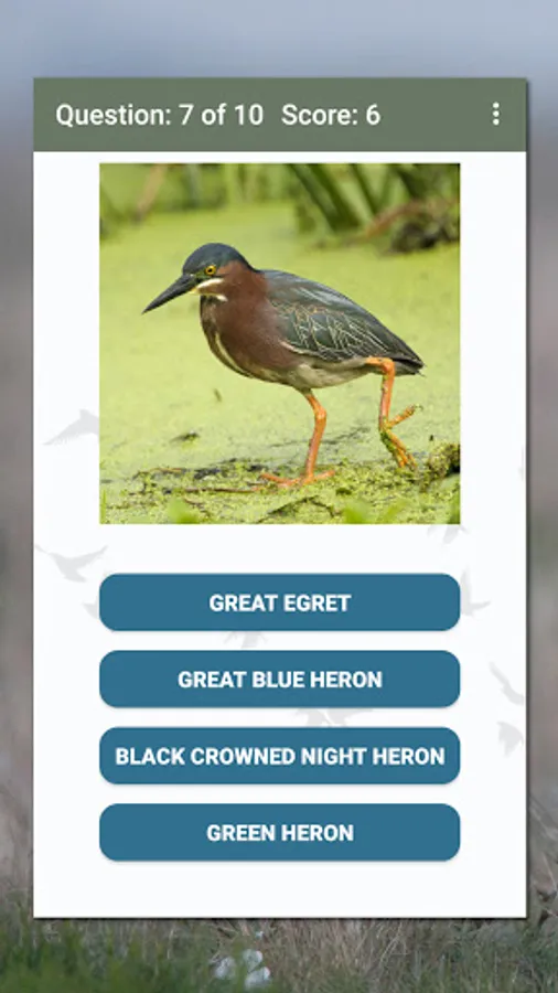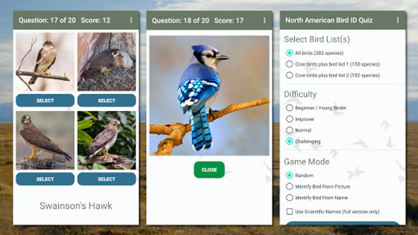 The standard quiz features 150 North American bird species. Players can identify each species either from its picture or by its name.